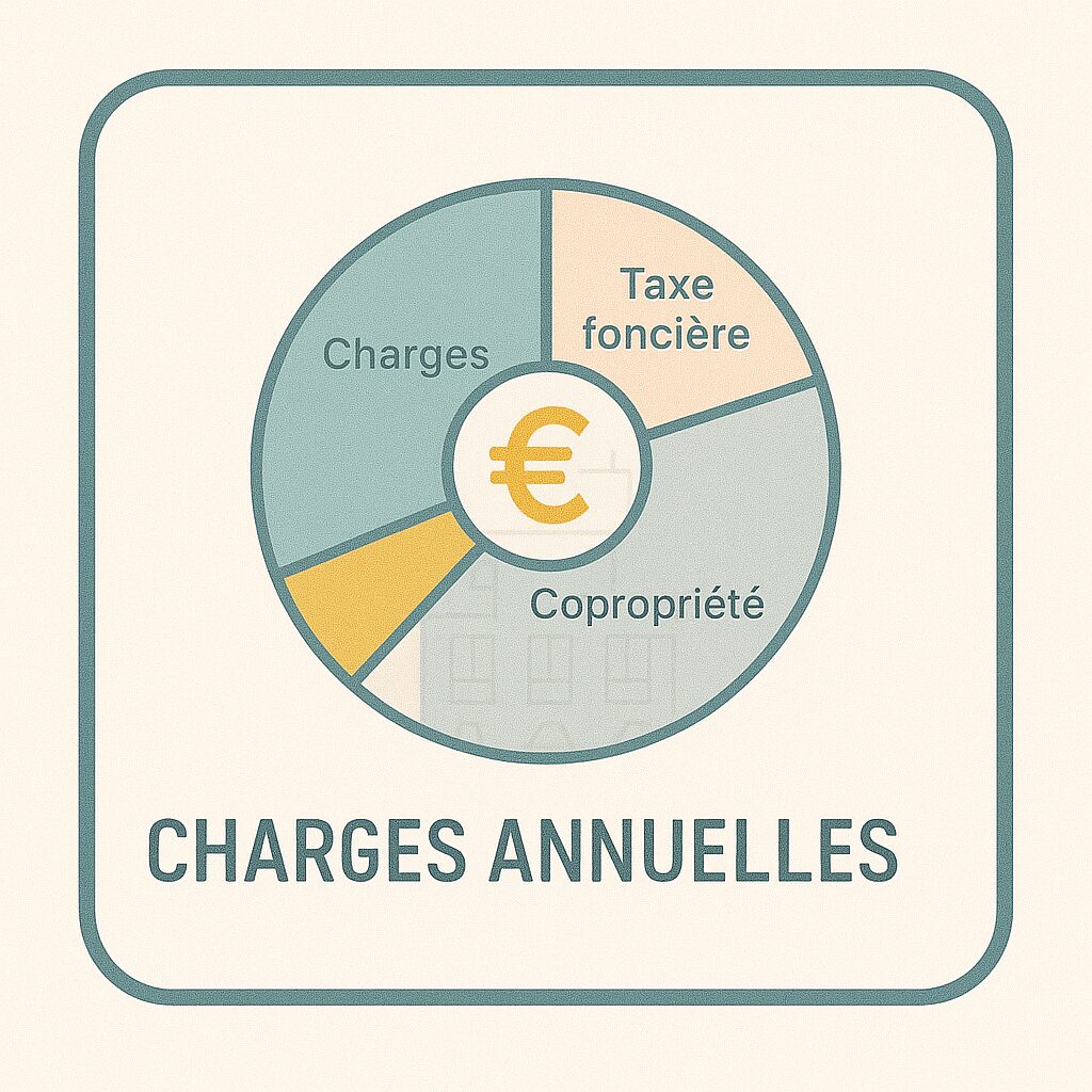 Prix d’achat + frais notariés + honoraires + assurances + travaux prévus + charges de copropriété + taxe foncière (environ 1 000–2 000 €/an à Paris).