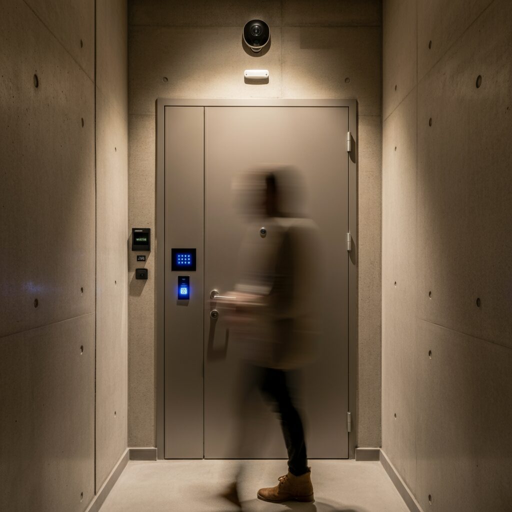 • Une porte d’appartement blindée, serrure A2P et fermeture multipoints.