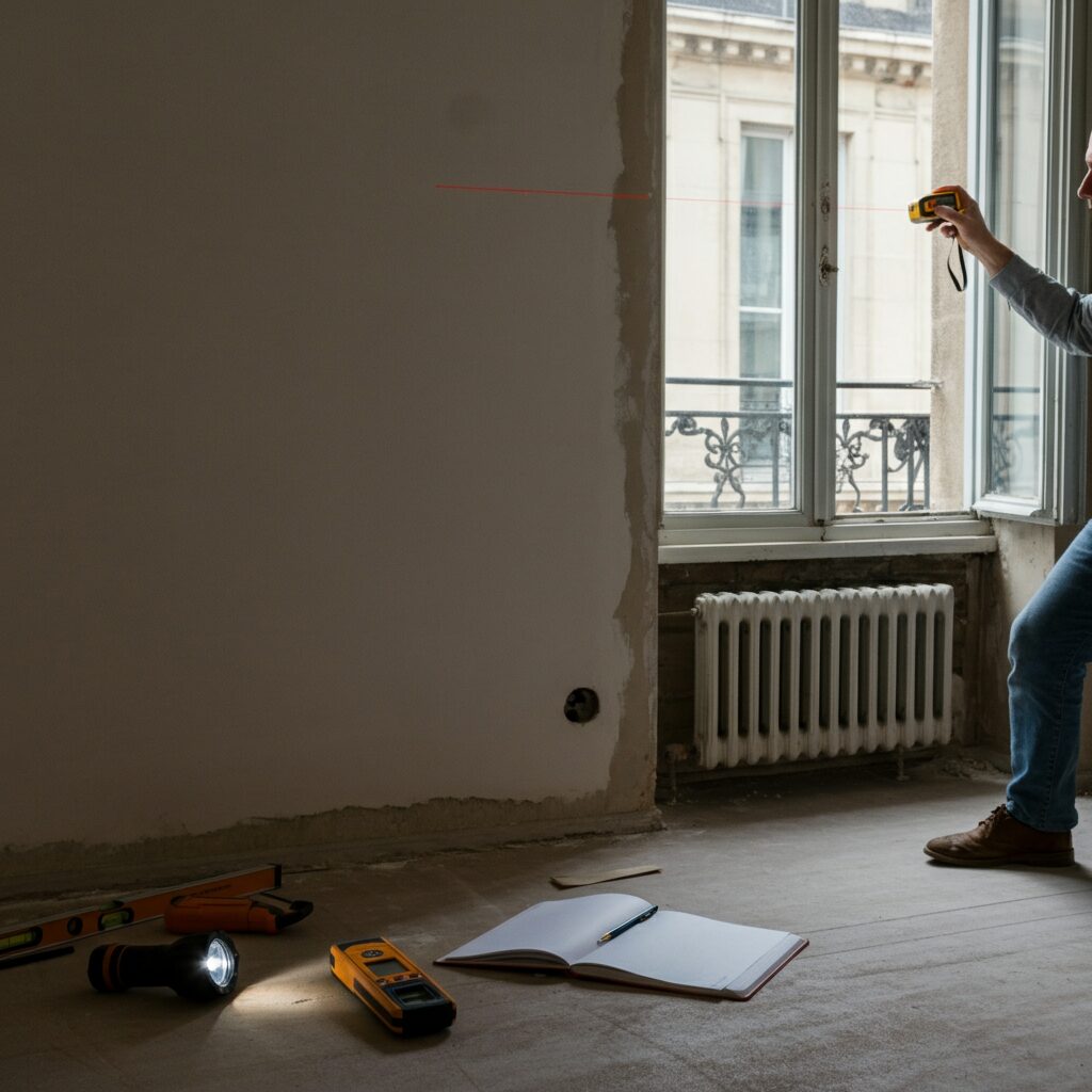 Lors de la check list avant d’acheter un appartement, planifiez une contre-visite appartement complète à différents moments de la journée pour évaluer l’éclairage naturel, les nuisances sonores et l’humidité. Munissez-vous d’un mètre laser, d’une lampe torche et d’un humidimètre pour vérifier :