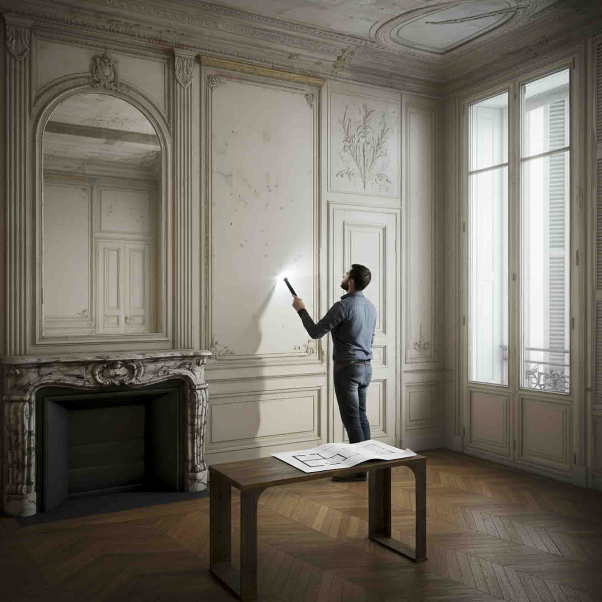 Examinez les pièces, murs, cloisons, sols, plafonds, moulures, cheminées et autres éléments de finition qui confèrent à votre bien immobilier son cachet parisien. Cette analyse vous permettra de repérer les signes d’usure sur les finitions et de déterminer si des travaux de rénovation sont nécessaires pour préserver ou moderniser le caractère haussmannien de votre intérieur.